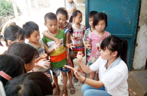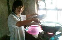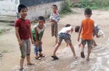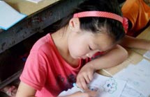 鄉(xiāng)村小學,沒有體育器材,沒有娛樂設施,孩子們只能選擇自娛自樂。有次,志愿者們看到孩子們用一根細樹棍,一塊石柱,就玩起了翹翹板。每到夜晚,志愿者的住處就擠滿了學生,大家或做游戲,或一起用筆記本電腦看哆啦A夢,從孩子們看動畫片的那份專注,志愿者們看得出來,孩子們很少能看到這種動畫片。天陰教室昏暗,加上學校經(jīng)常斷電,孩子們不得不在陰暗的環(huán)境中上課。老師拿來自己的小臺燈給在角落的孩子照明,即使在這樣的情況下,孩子們依然學習很認真。申倩老師應該是最受歡迎的啦,她多次收到孩子們的“示愛書信”,那些小紙條上往往寫著“音樂老師你唱的歌很好聽,我喜歡你”