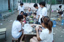 志愿者宋文靜是付里莊小學手語老師,是團隊隊員和孩子們公認的富有童趣的一小老師。她經(jīng)常陪孩子們做游戲,陪他們看哆啦A夢。但就是這樣一位老師,上了課堂卻像換了個人似的,非常嚴厲。志愿者王蒙苗是付里莊小學口才勵志課老師。課堂上,她認真教學,課堂下用勵志故事激勵孩子們努力學習。因為經(jīng)常照顧生病的孩子,孩子們認為她最有愛的一個老師。志愿者孔令陵是后勤人員之一及封丘支教教務主任。她每天都會在五點去最近的商店買菜,然后摘菜、洗菜,做整個團隊和部分孩子的飯菜,保障全隊生活