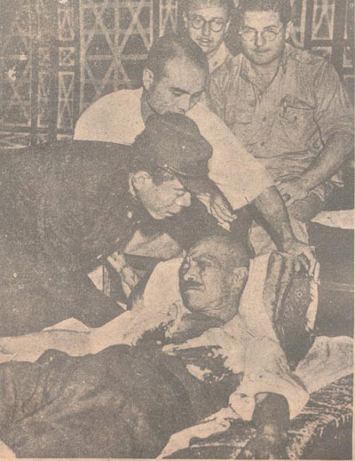 1945年8月,日本無條件投降后不久,東條英機(jī)自知罪責(zé)難逃,舉槍自殺。圖示他中彈獲救時(shí)之痛苦情狀。作為頭號(hào)戰(zhàn)犯,他在獲救后仍被送上絞刑架。三絞廢命。