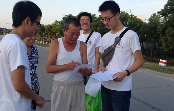 邀請(qǐng)當(dāng)?shù)鼐用裉顚懹嘘P(guān)洪湖環(huán)境狀況的調(diào)查問卷。