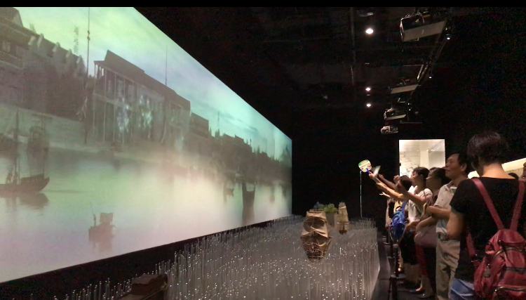 三維影片《千年羊城》,讓觀眾在不到10分鐘內(nèi),速覽城建史上的重要事件,跨越千年印記,感受廣州前世今生;“廣州港與廣州府城圖”數(shù)字化動態(tài)長卷,再現(xiàn)19世紀(jì)珠江兩岸的繁華盛景,堪稱廣州版“清明上河圖”;45×56米的全域沙盤,讓你在山脈、水脈之中,縱覽7434平方公里的廣州,配合全新打造的城市規(guī)劃宣傳片,零距離感受廣州城市格局和未來發(fā)展藍(lán)圖……