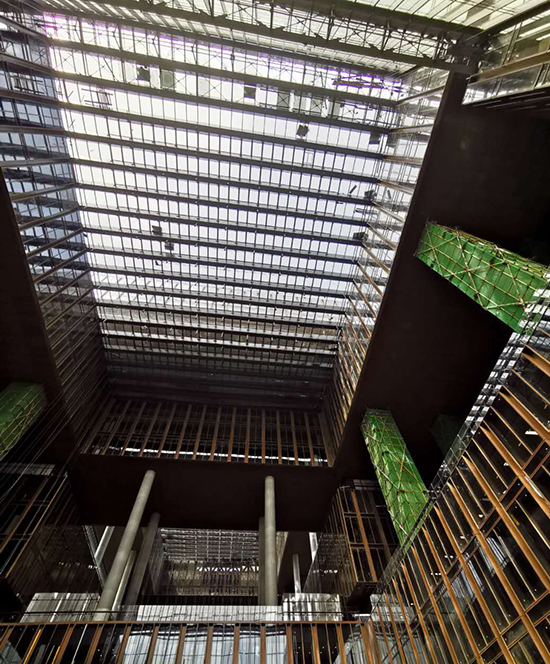 該項目C標(biāo)段由中建八局西南公司承建,自開工建設(shè)以來經(jīng)歷著一項又一項的艱難挑戰(zhàn):17天內(nèi)完成一座引領(lǐng)全國的標(biāo)志性臨建工程施工;用不足鳥巢1/4的時間完成2倍于鳥巢噸位的鋼結(jié)構(gòu)安裝;超大跨度魚腹式張弦梁現(xiàn)場拼接及高精度吊裝;使用懸掛腳手架作為大跨度采光頂屋蓋體系施工平臺;建設(shè)工程“魯班獎”、LEED鉑金、綠色建筑三星級認證等國內(nèi)國際一流施工標(biāo)準(zhǔn)要求,等等。