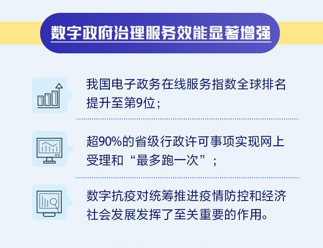 《報(bào)告》顯示,我國數(shù)字政府治理服務(wù)效能顯著增強(qiáng)。我國電子政務(wù)在線服務(wù)指數(shù)全球排名提升至第9位;超90%的省級(jí)行政許可事項(xiàng)實(shí)現(xiàn)網(wǎng)上受理和“最多跑一次”;數(shù)字抗疫對(duì)統(tǒng)籌推進(jìn)疫情防控和經(jīng)濟(jì)社會(huì)發(fā)展發(fā)揮了至關(guān)重要的作用。