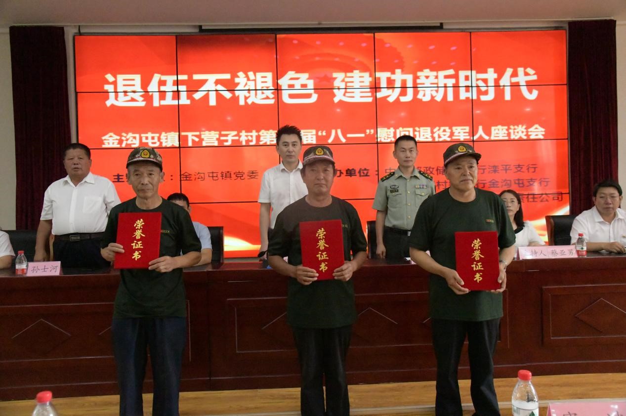 8月1日下午,灤平縣金溝屯鎮(zhèn)下?tīng)I(yíng)子村聯(lián)合愛(ài)心企業(yè)中國(guó)郵政儲(chǔ)蓄銀行灤平支行、灤平盛陽(yáng)村鎮(zhèn)銀行金溝屯支行和承德久財(cái)農(nóng)牧開(kāi)發(fā)有限責(zé)任公司共同舉辦了“退伍不褪色 建功新時(shí)代”第二屆“八一”慰問(wèn)退役軍人座談會(huì);顒(dòng)現(xiàn)場(chǎng),大家歡聚一堂,共同慶祝中國(guó)人民解放軍建軍95周年,共敘魚(yú)水深情,并為優(yōu)秀退役軍人頒發(fā)榮譽(yù)證書(shū)。 王海琦 郎朗 攝