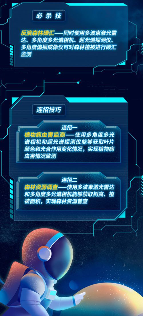 “森林碳匯監(jiān)測需要有高精度的植被數(shù)據(jù)作為支撐,為了達到這一要求,研制團隊創(chuàng)新性地將天基測繪‘激光雷達+光學相機’為代表的主被動聯(lián)合觀測手段應用到森林監(jiān)測中。” 航天科技集團五院專家表示,通過衛(wèi)星獲取高精度數(shù)據(jù),對激光雷達和多光譜相機要求很高。衛(wèi)星研制團隊基于現(xiàn)有技術基礎,設計出了天基森林碳匯監(jiān)測的“絕佳方案”:以激光雷達波束翻倍、重頻提升逾30倍,配置5個多光譜相機進行5角度綜合觀測。這種主被動聯(lián)合觀測模式,不僅充分發(fā)揮了激光雷達和多光譜相機的優(yōu)勢,同時還能利用激光校準多光譜相機精度,充分滿足了森林碳匯監(jiān)測的精度需求。