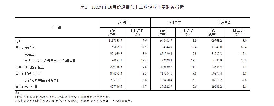 2022年1-10月規(guī)模以上工業(yè)企業(yè)主要財(cái)務(wù)指標(biāo)。 國家統(tǒng)計(jì)局官網(wǎng)截圖